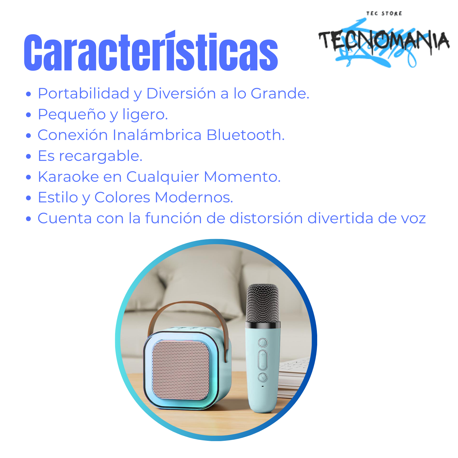 - Función de distorsión de voz: agrega efectos graciosos a tu karaoke.
